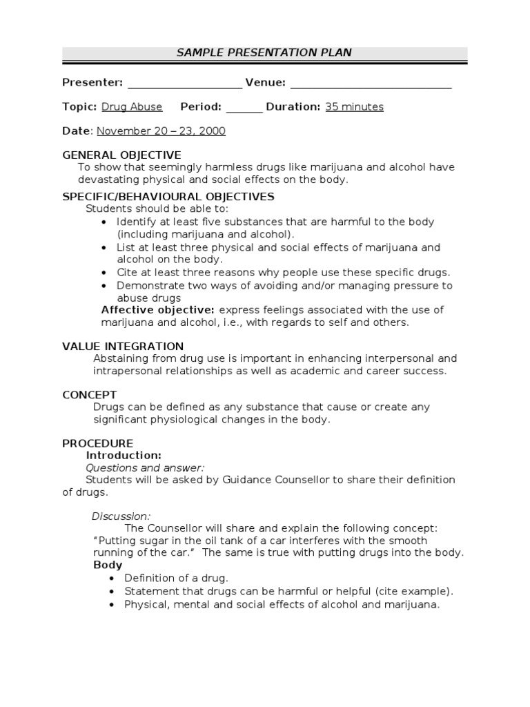 Sample Presentation Plan: Questions and Answer | PDF | Self-Improvement