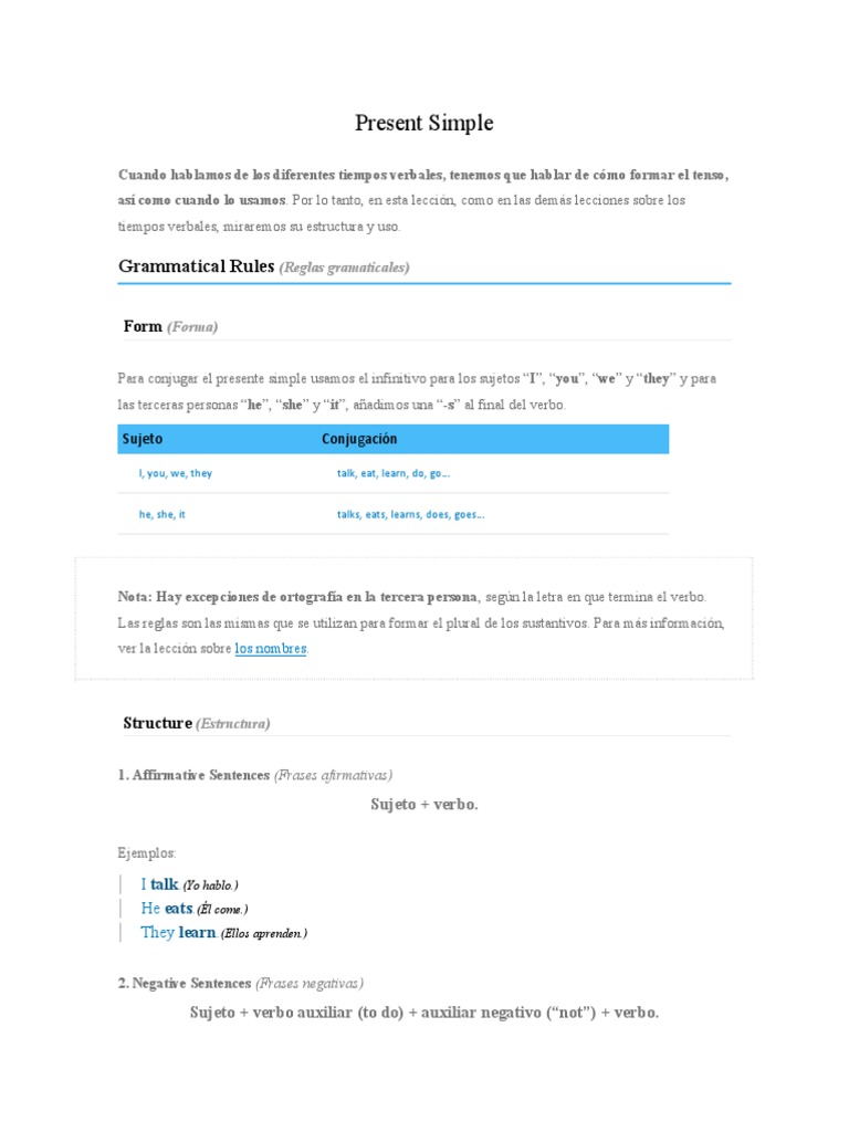 Que Es Estructura Gramatical Del Presente Simple - 2020 idea e inspiración