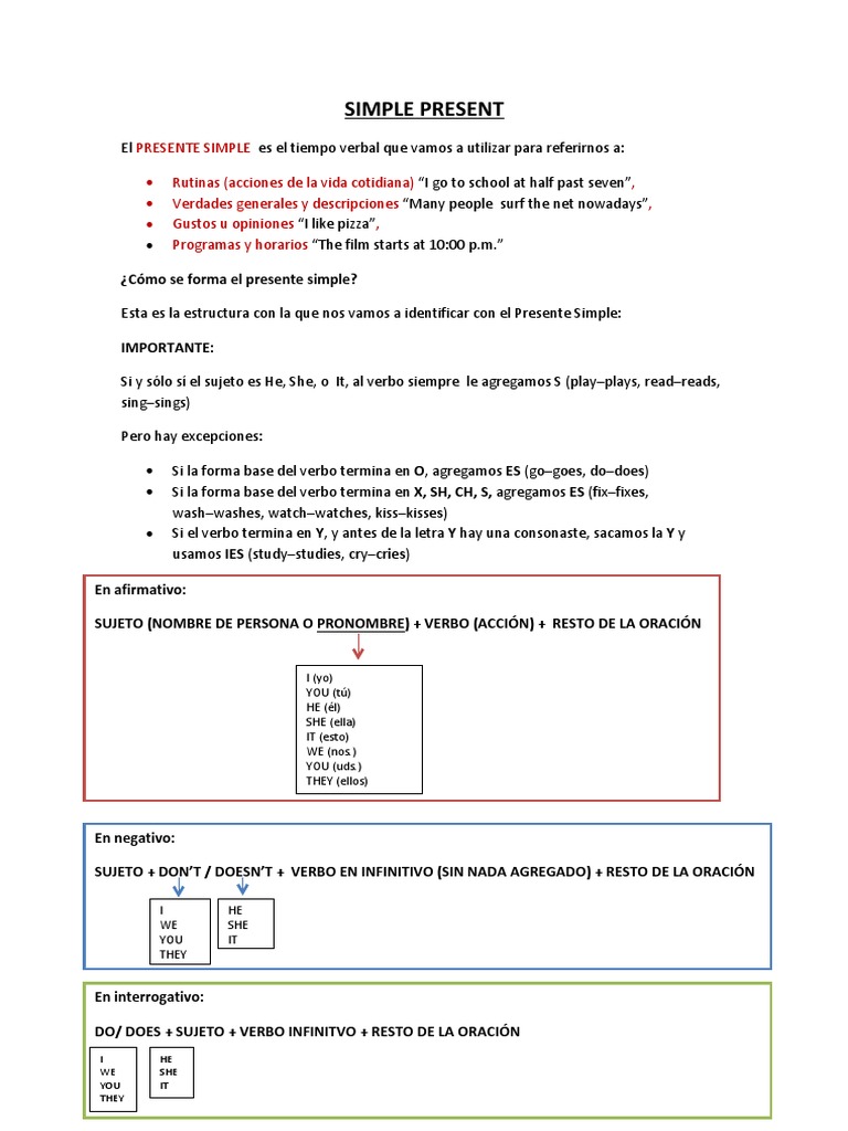 Explicación Del Presente Simple | PDF | Asunto (gramática) | Morfología ...