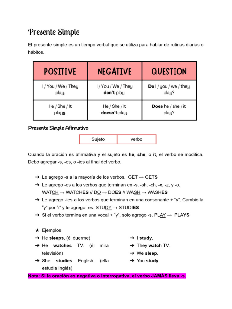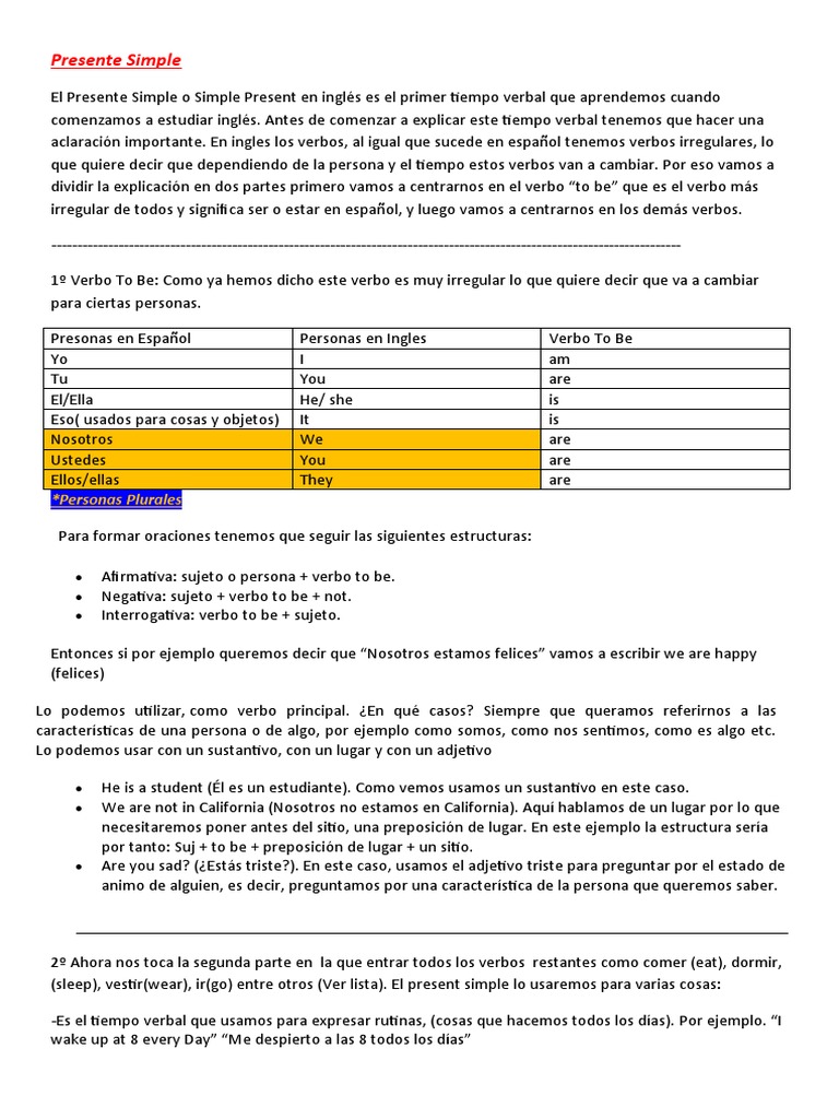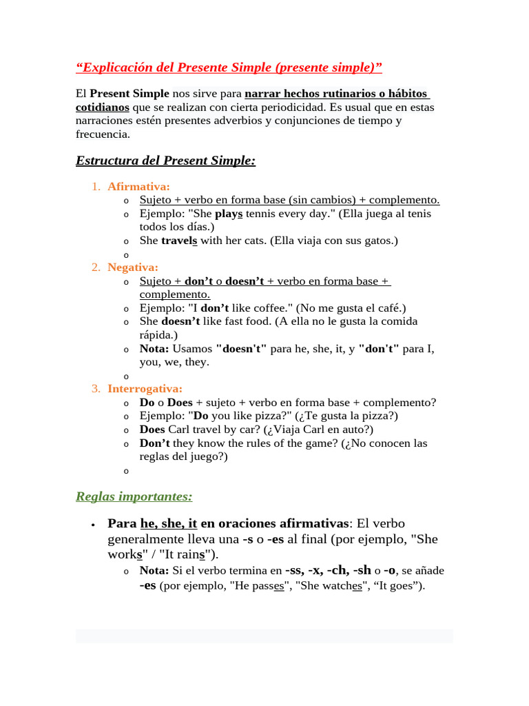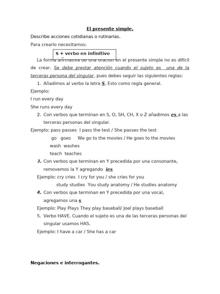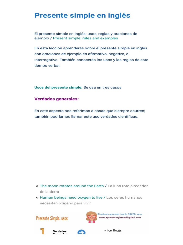 Presente Simple En Inglés Pdf | Present simple: uso, conjugación y ...