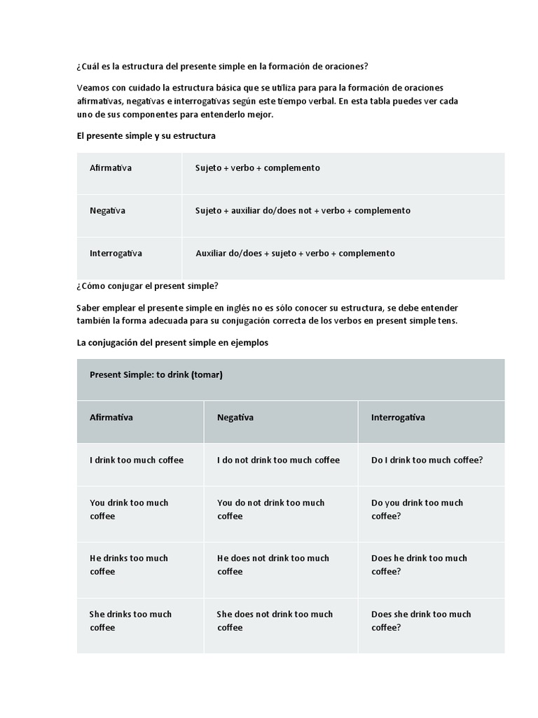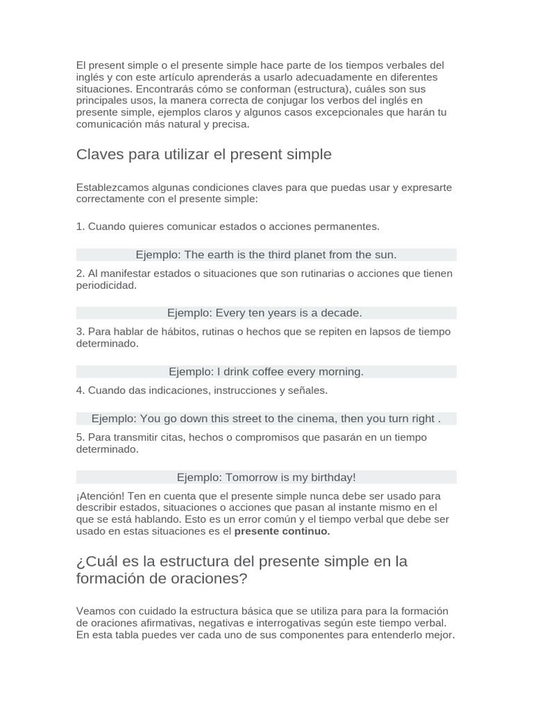 Cuál Es La Estructura Del Presente Simple en La Formación de Oraciones ...