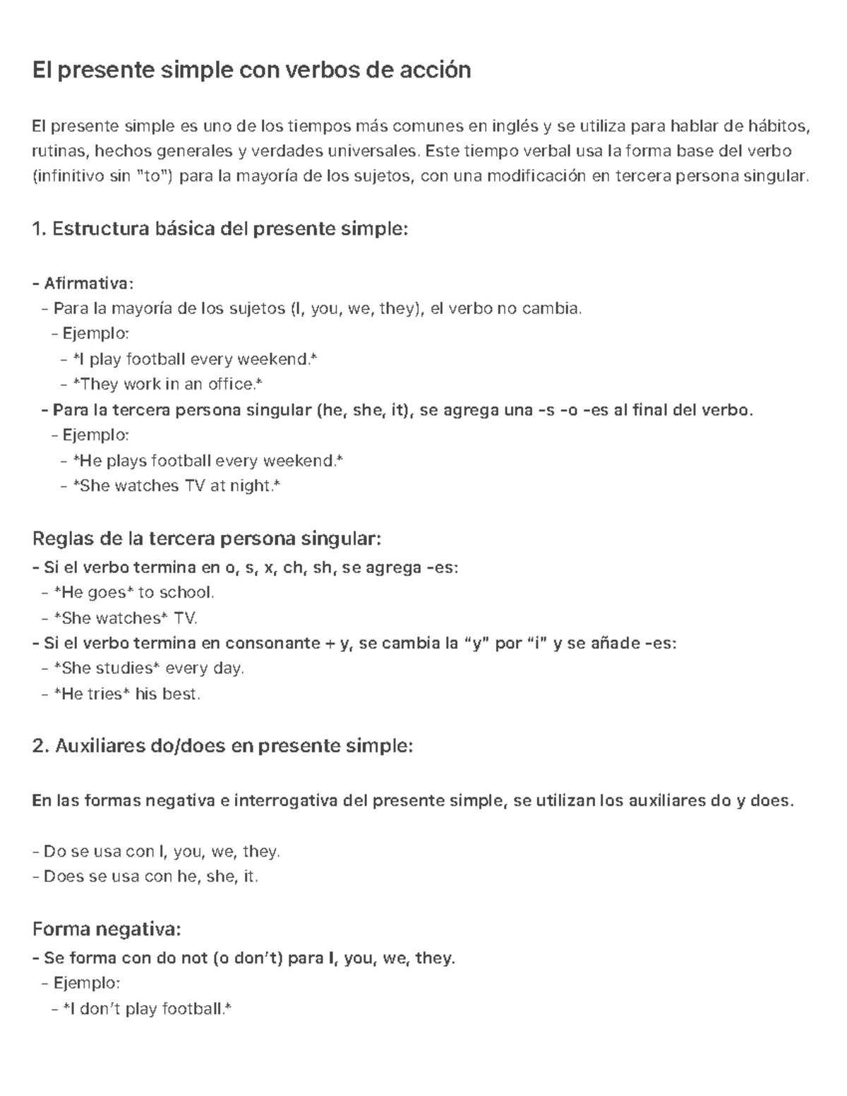 El Presente Simple en Inglés: Estructura y Uso - Gramática - Studocu