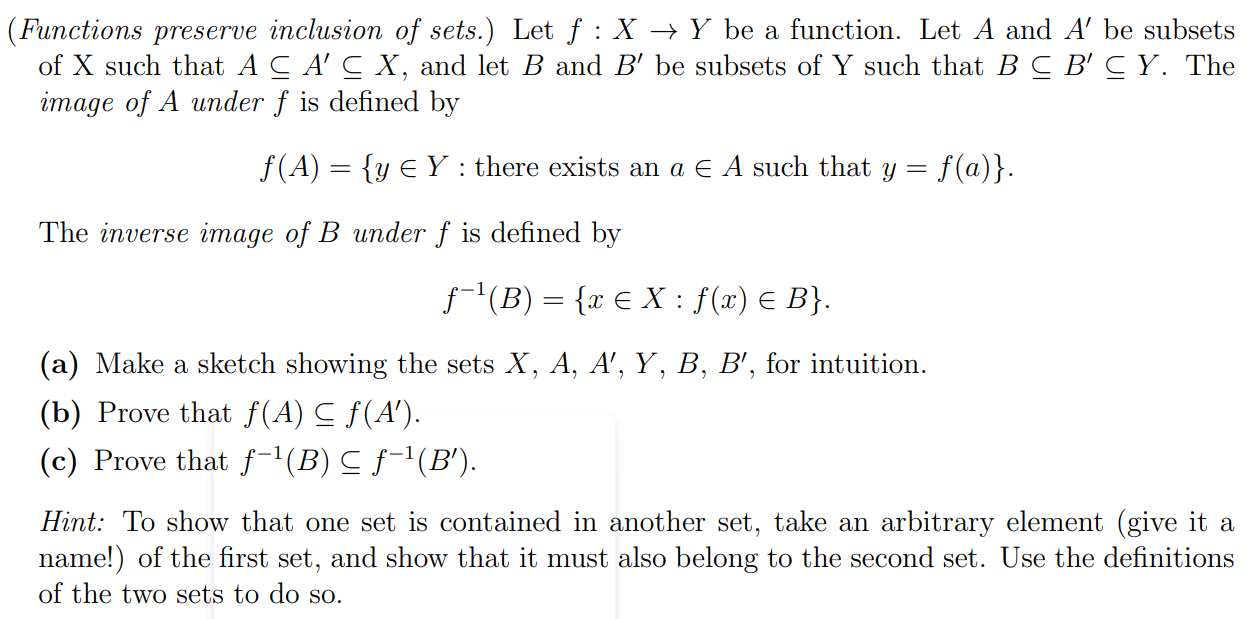 Solved (Functions preserve inclusion of sets.) Let f : X + Y | Chegg.com