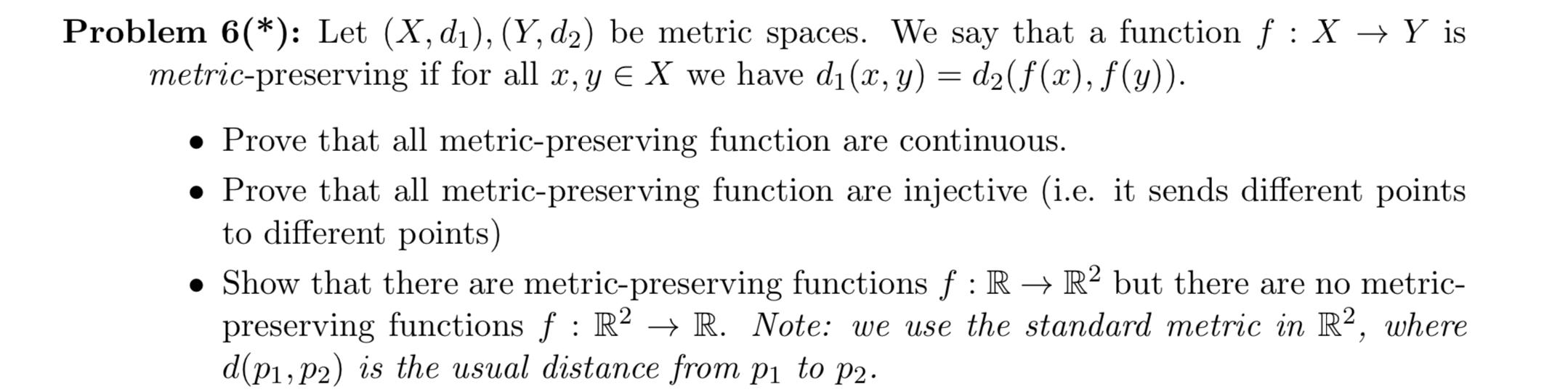Solved Problem 6(∗) : Let (X,d1),(Y,d2) be metric spaces. We | Chegg.com
