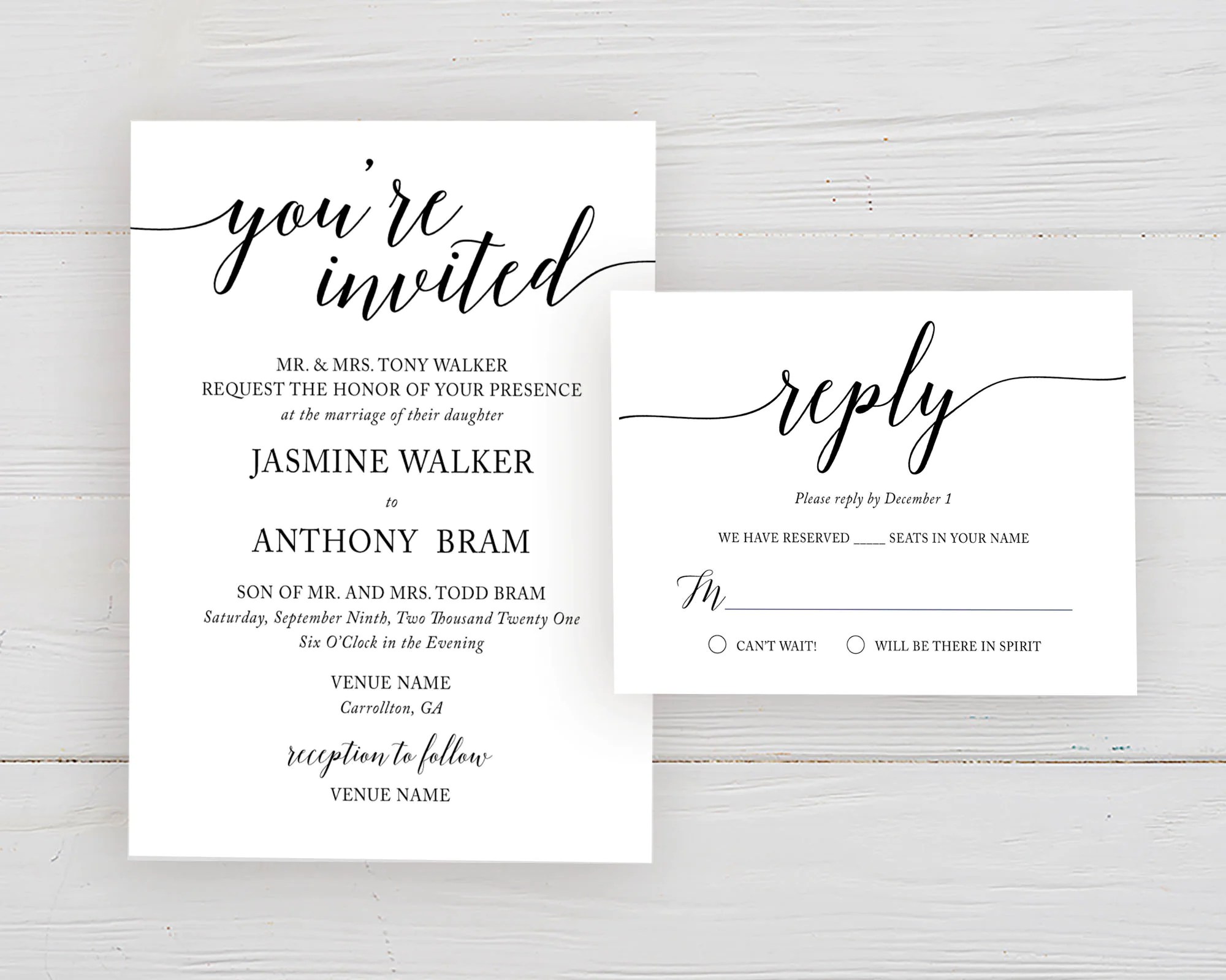 Simple Wedding Invitations & RSVP Card Set, You're Invited Wedding ...