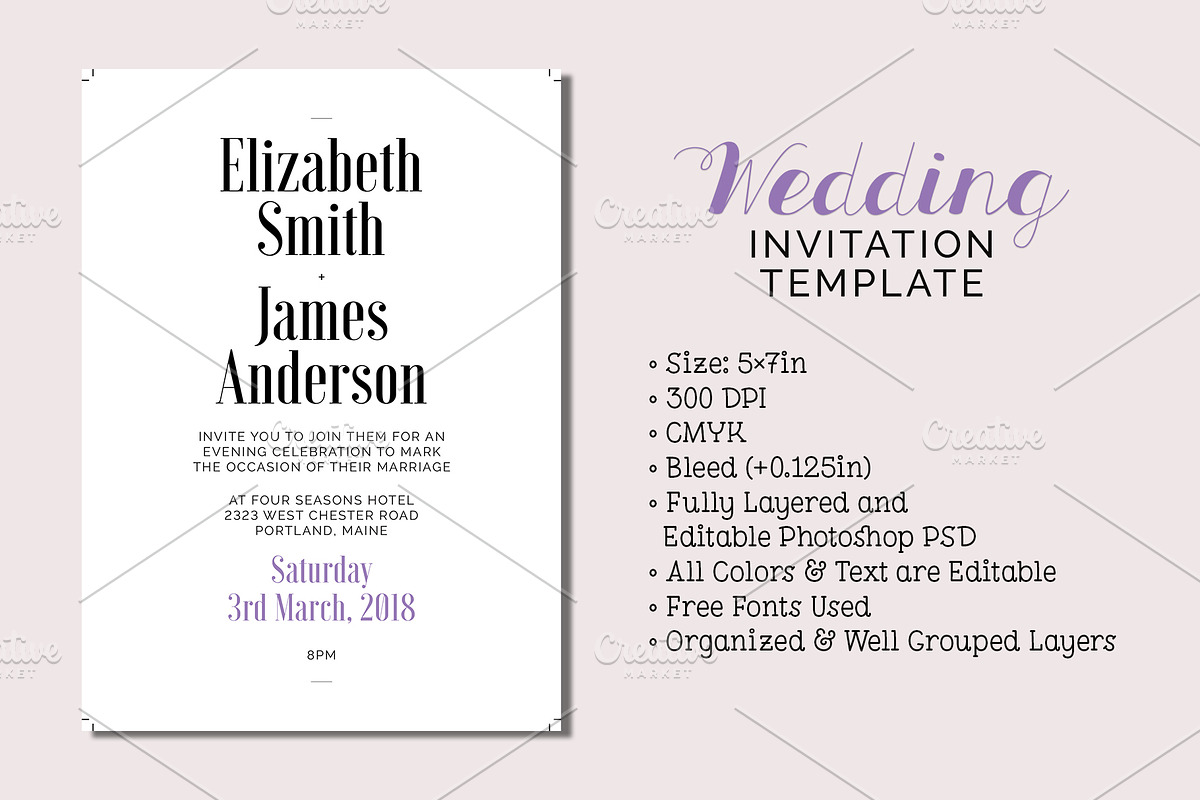 Modern Wedding Invitation, an Invitation Template by Cyrah's Collection