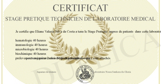 Certificat Stage Pretique Technicien de Laboratoire Medical