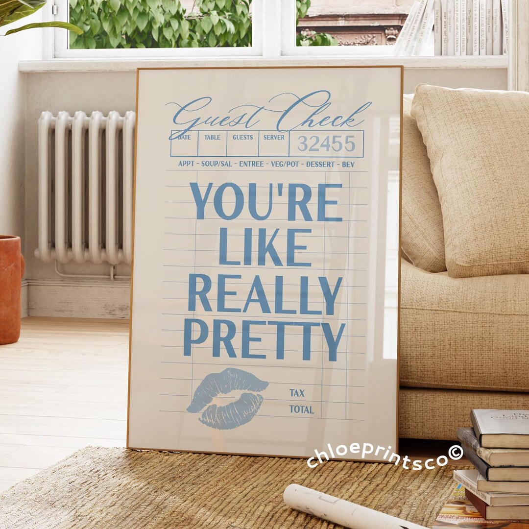 You're Like Really Pretty Guest Check Poster Dorm Decor, Funky Wall Art ...