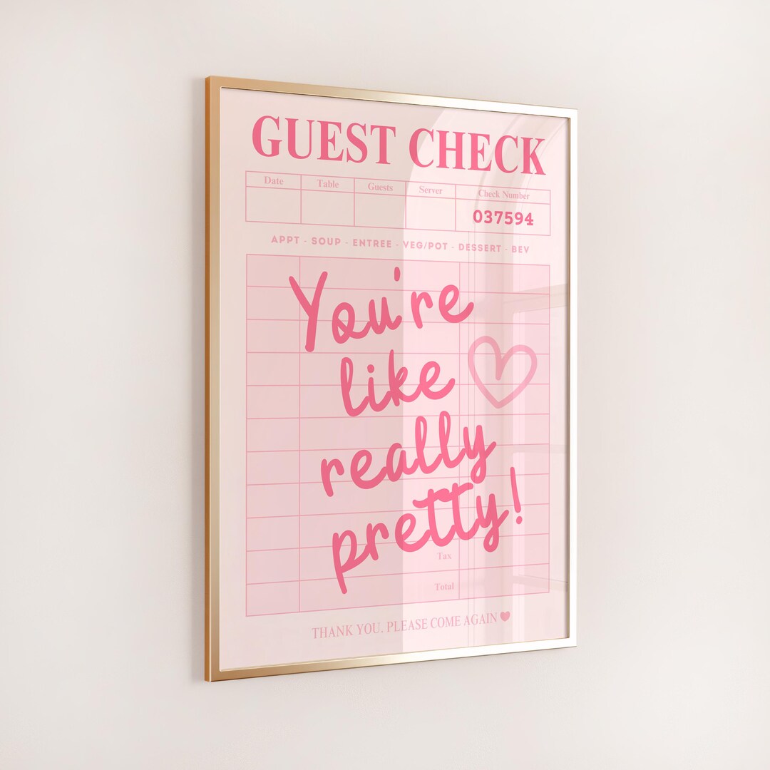 You're Like Really Pretty Guest Check Pink Preppy Wall Decor Poster or ...