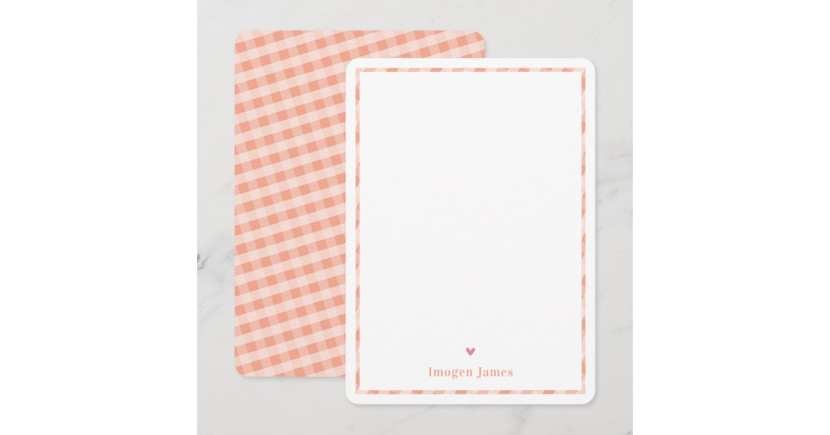 THANK YOU NOTE cute pretty check pastel orange | Zazzle