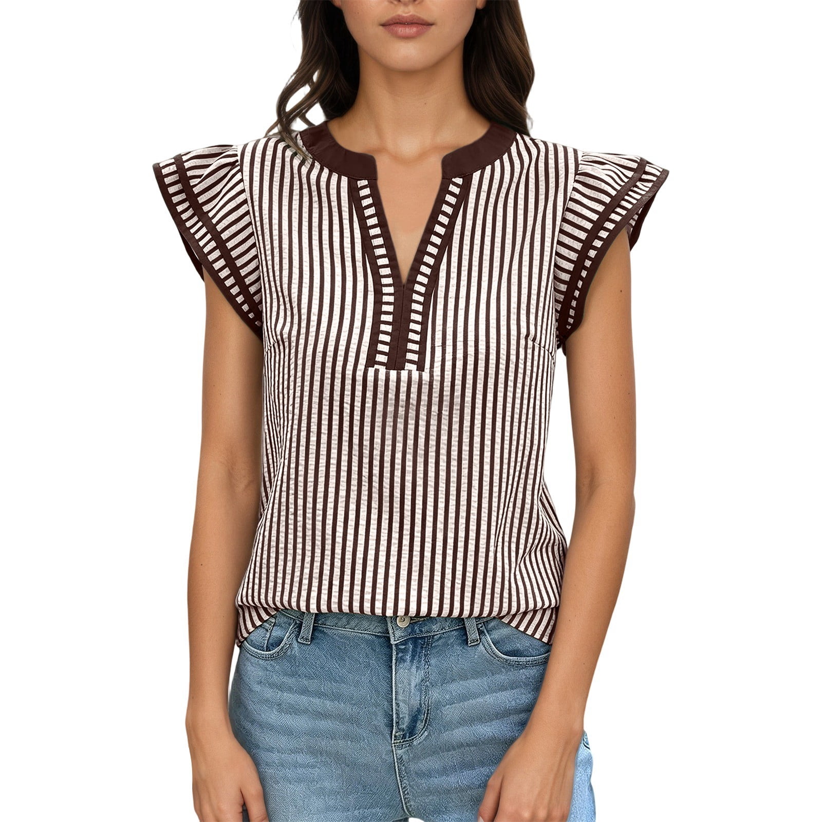 Bainana Women'S Fashion Striped Shirt With Contrast Collar And Flutter ...