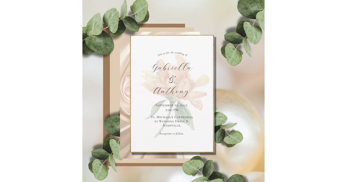Pretty Floral Gold Modern Wedding Invitations | Zazzle