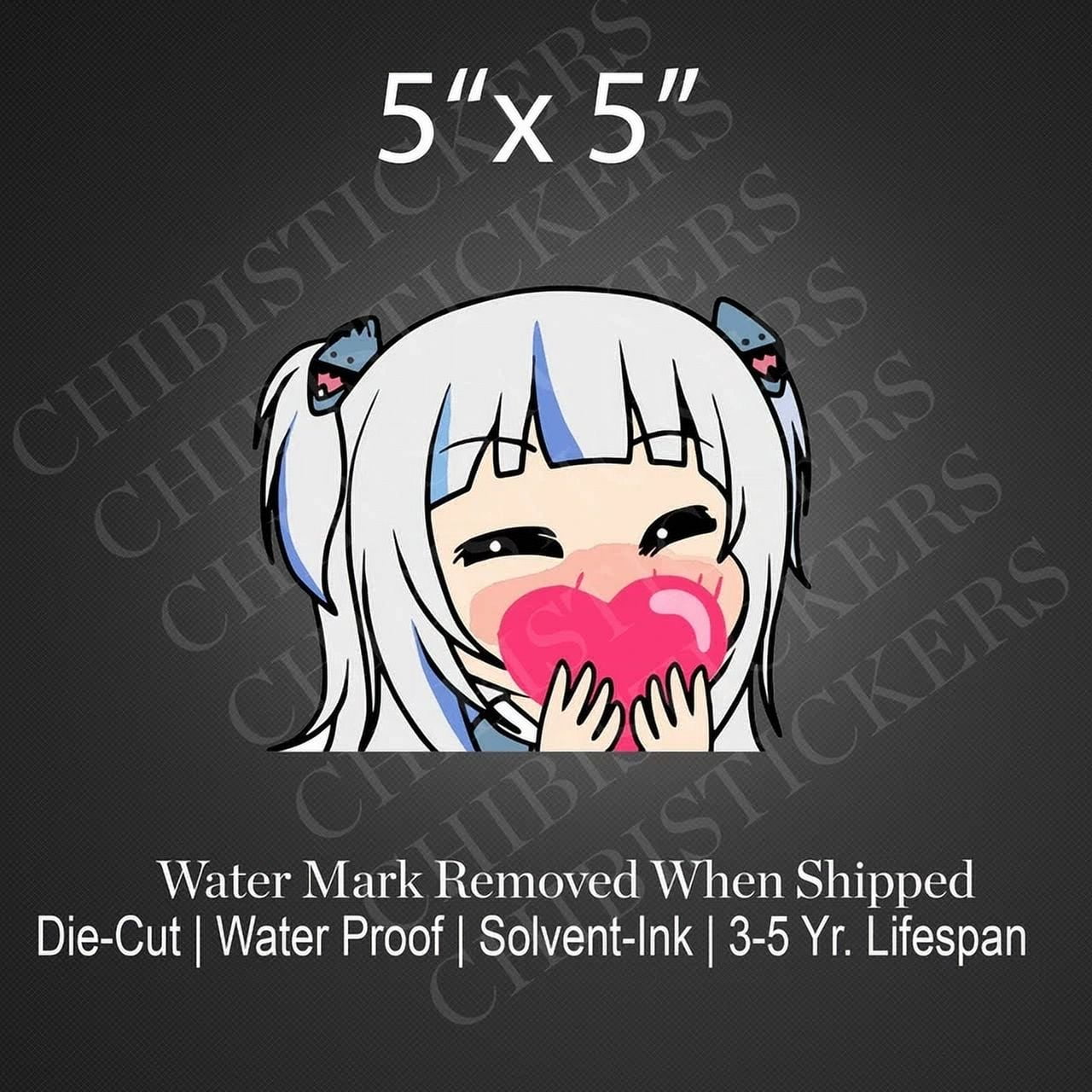 Kira Sticker With Gawr Gura Hearts Kawaii Chibi Peeker Anime Vinyl ...