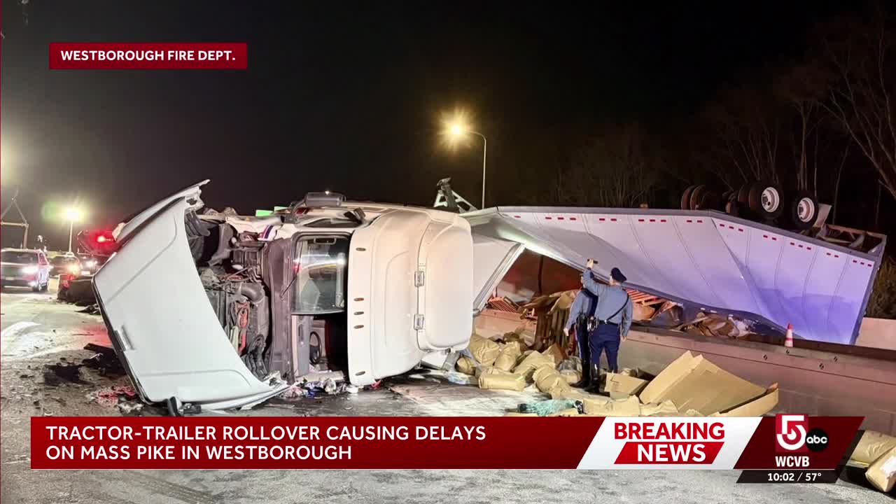 Drivers warned of delays after tractor trailer overturns on Mass Pike