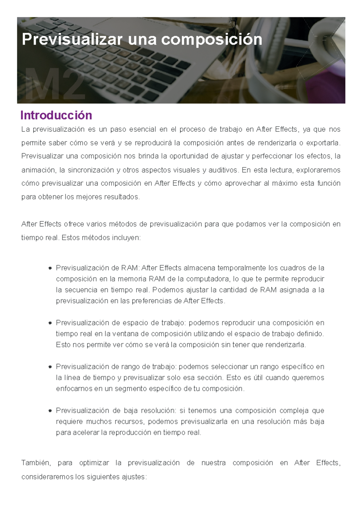 Modulo 2 Lectura 2 - Previsualizar una composición Introducción La ...