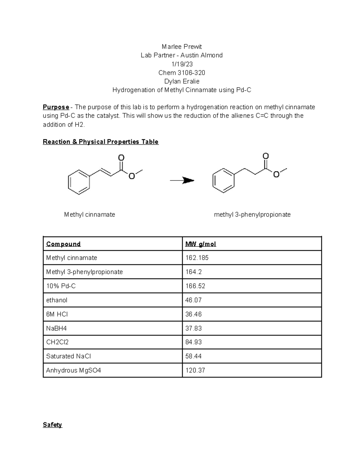 Lab 1 - Received a 100 grade - Marlee Prewit Lab Partner - Austin ...