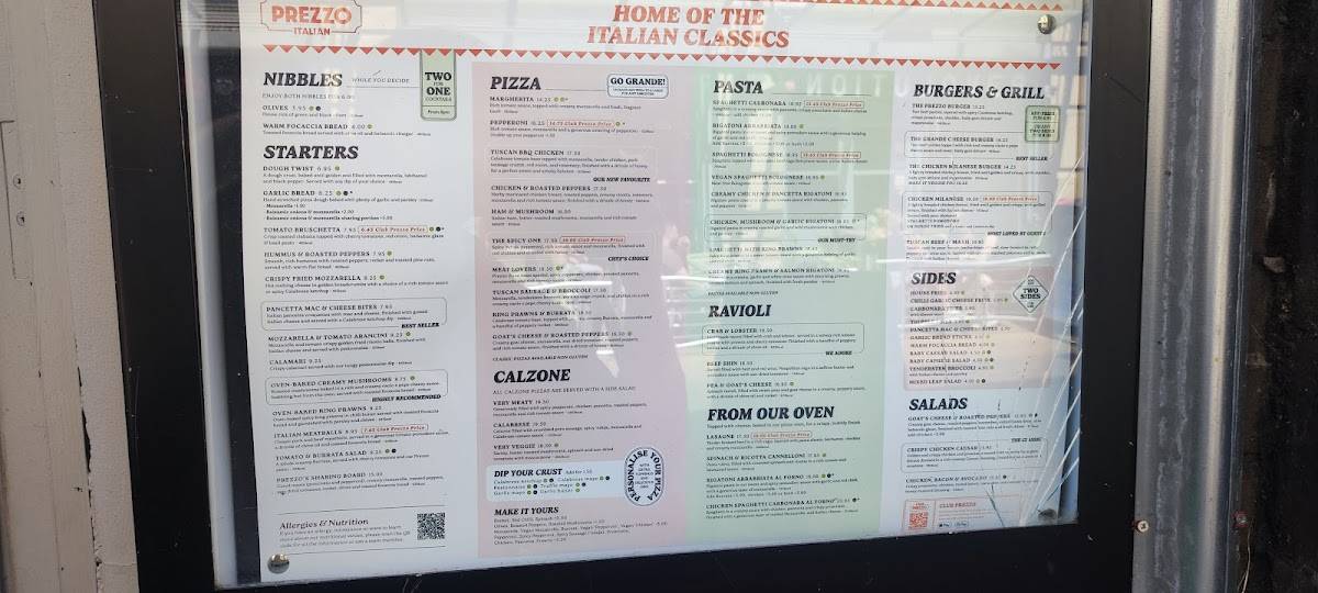 Prezzo Menu Prices 2025 (United Kingdom) - The Food Prices