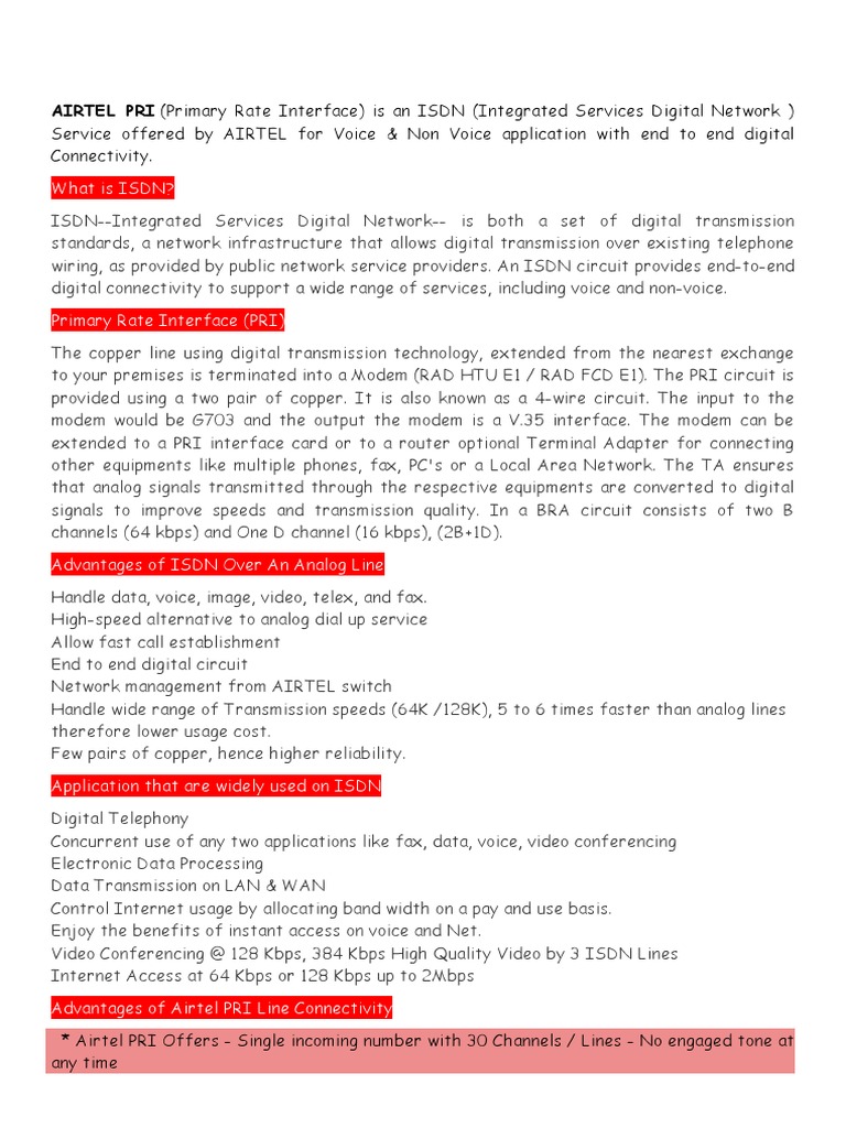 Airtel PRI Advantage | PDF | Modem | Internet Access