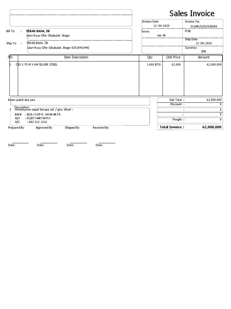 Sales Invoice Template Free Download word, excel, google docs and sheets