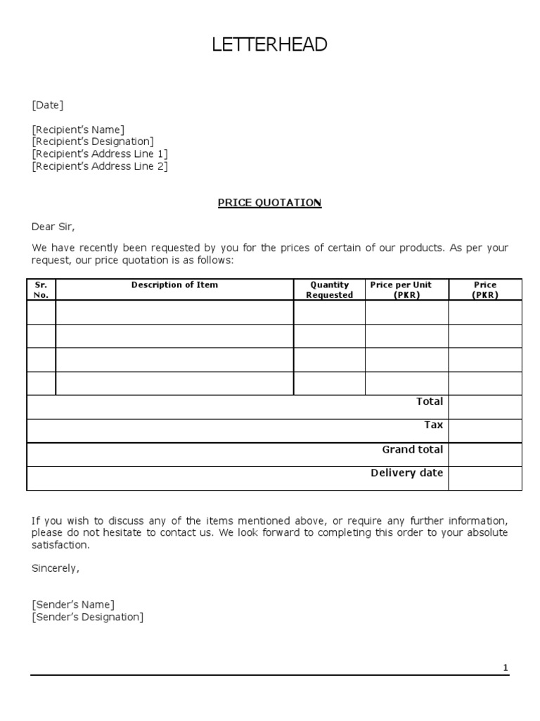 FREE 12+ Price Quotation Samples in MS Word | PDF