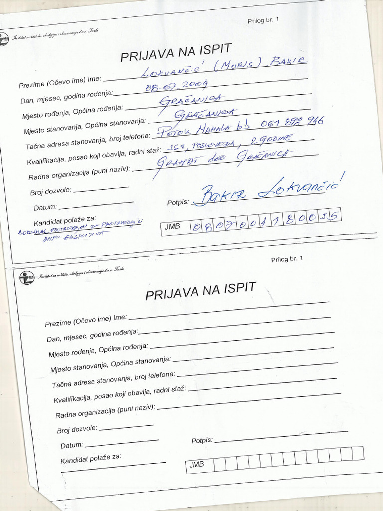 Prijava Za Registraciju Obrazac | PDF