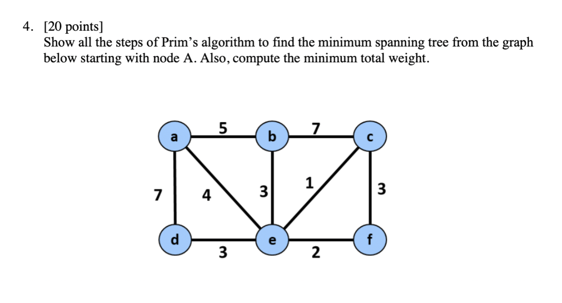 Solved 4. [20 points] Show all the steps of Prim’s algorithm | Chegg.com