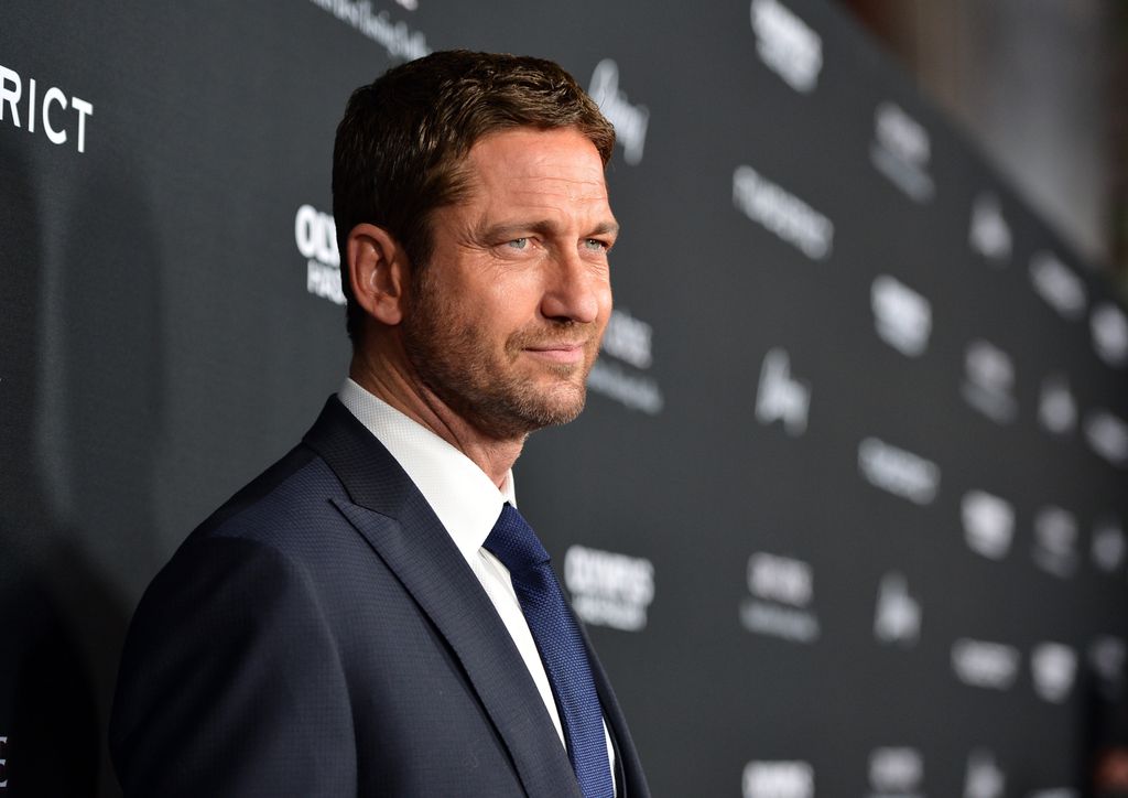 Gerard Butler sorride mentre saluta i fan e firma autografi al di fuori ...
