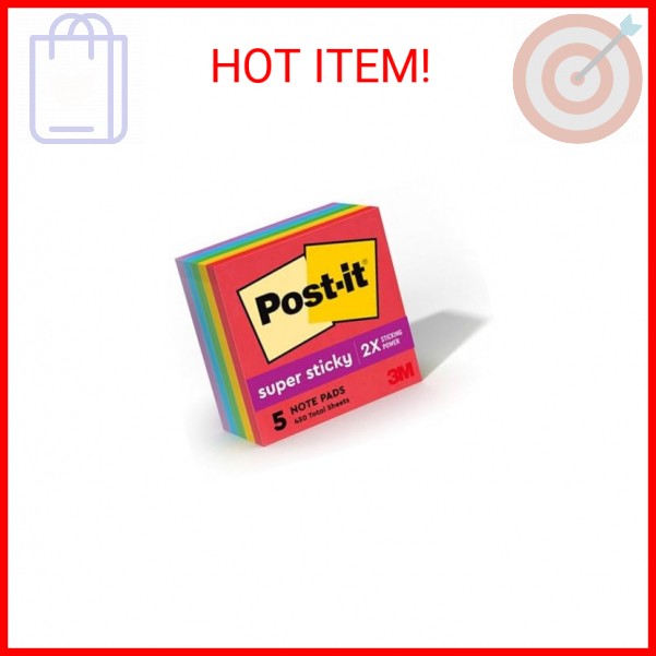 Post-it Super Sticky Notes, 3x3 in, 5 Pads, 2X The Sticking Power ...
