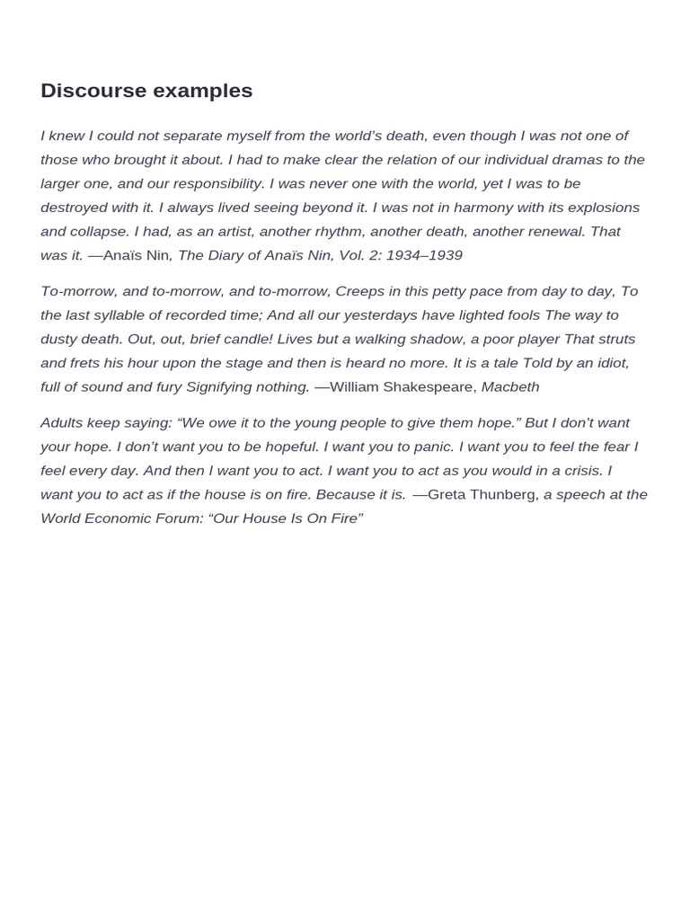 Discourse Examples TO BE READ BY STUDENTS | PDF