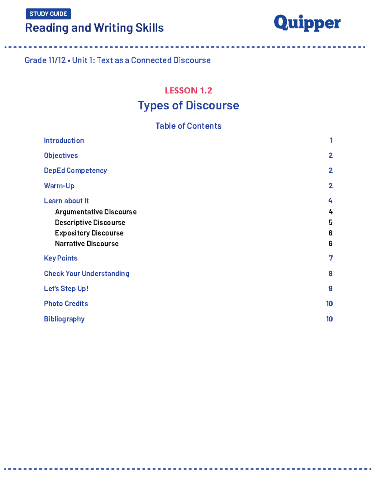 ME Eng RW 11 Q3 0102 SG Types of Discourse: Lesson Overview and Guide ...