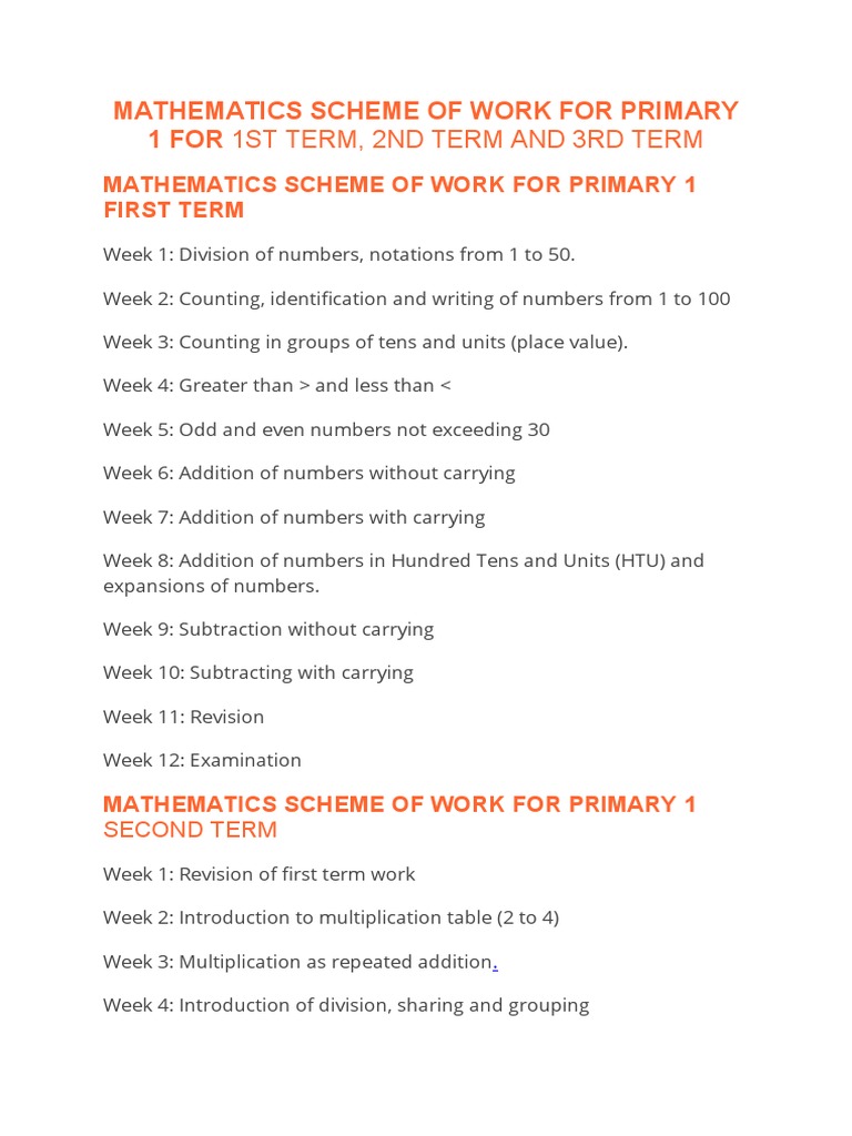 SCHEME OF WORK PRIMARY 1 | PDF | Mathematics | Mathematical Notation