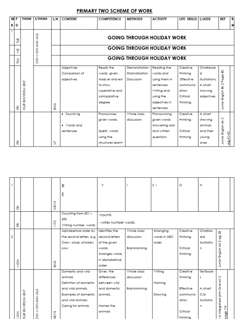 p.2 Primary Two Scheme of Work Teacher.ac (1) | PDF | English Language ...