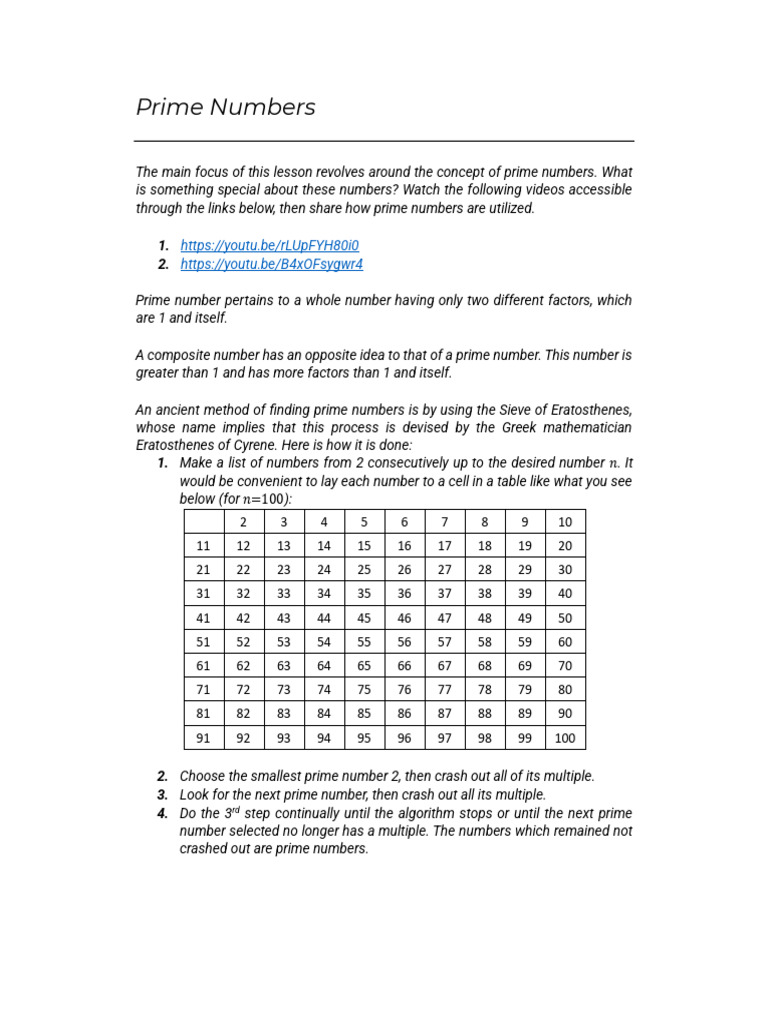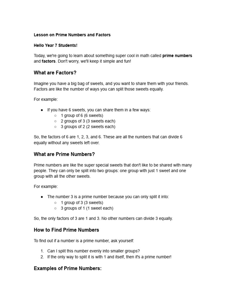 Part 2 Comprehensive Lesson Plan On Prime Numbers and Factors | PDF ...