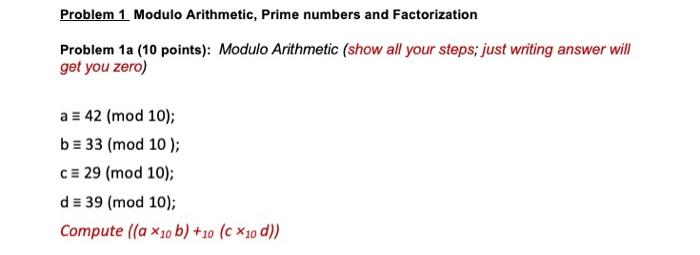 Solved Problem 1 Modulo Arithmetic, Prime numbers and | Chegg.com