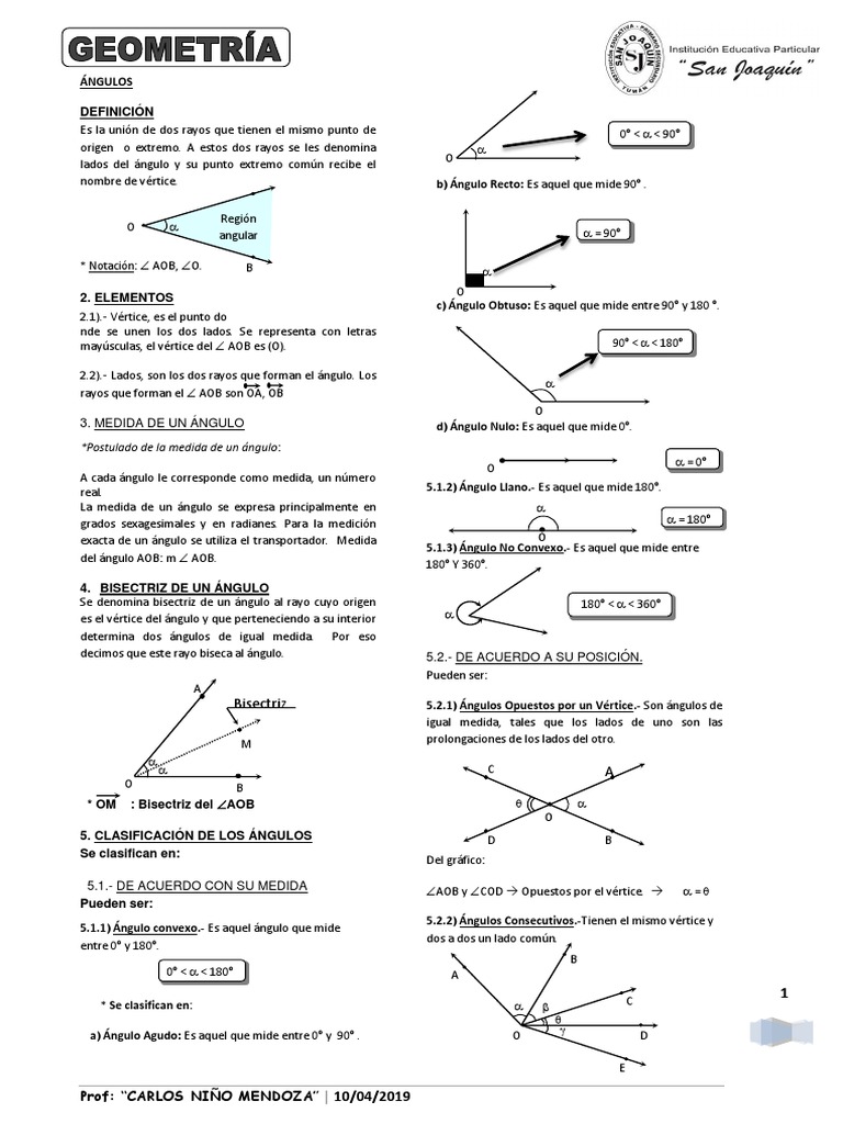 Geometria Primero-Angulo PDF | PDF | Ángulo | Notación Matemática