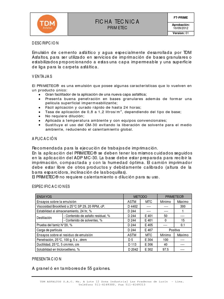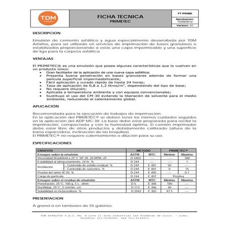 FT Primetec Emulsin para Imprimacin | PDF