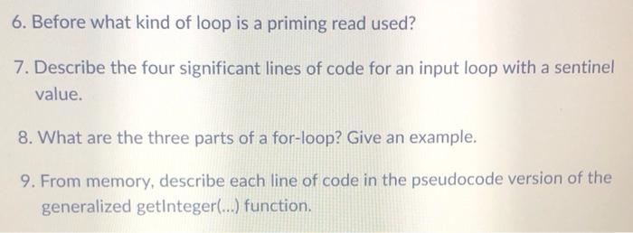 Solved 6. Before what kind of loop is a priming read used? | Chegg.com