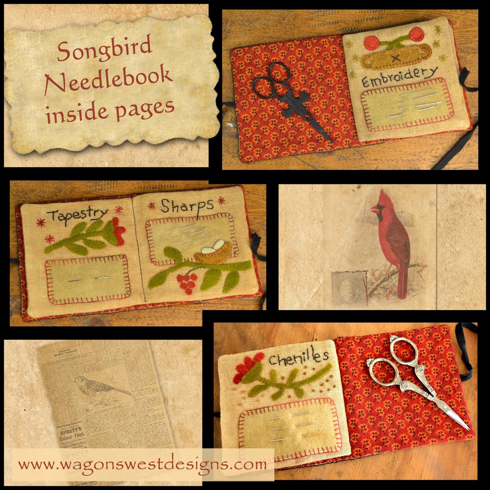 Primitive Wool Applique PDF Pattern - Songbird Needlebook - Etsy