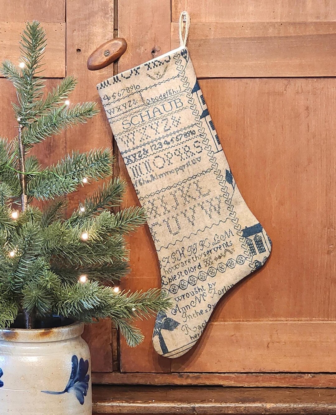 Primitive Alphabet Sampler Stocking, Personalized Handmade Stocking ...