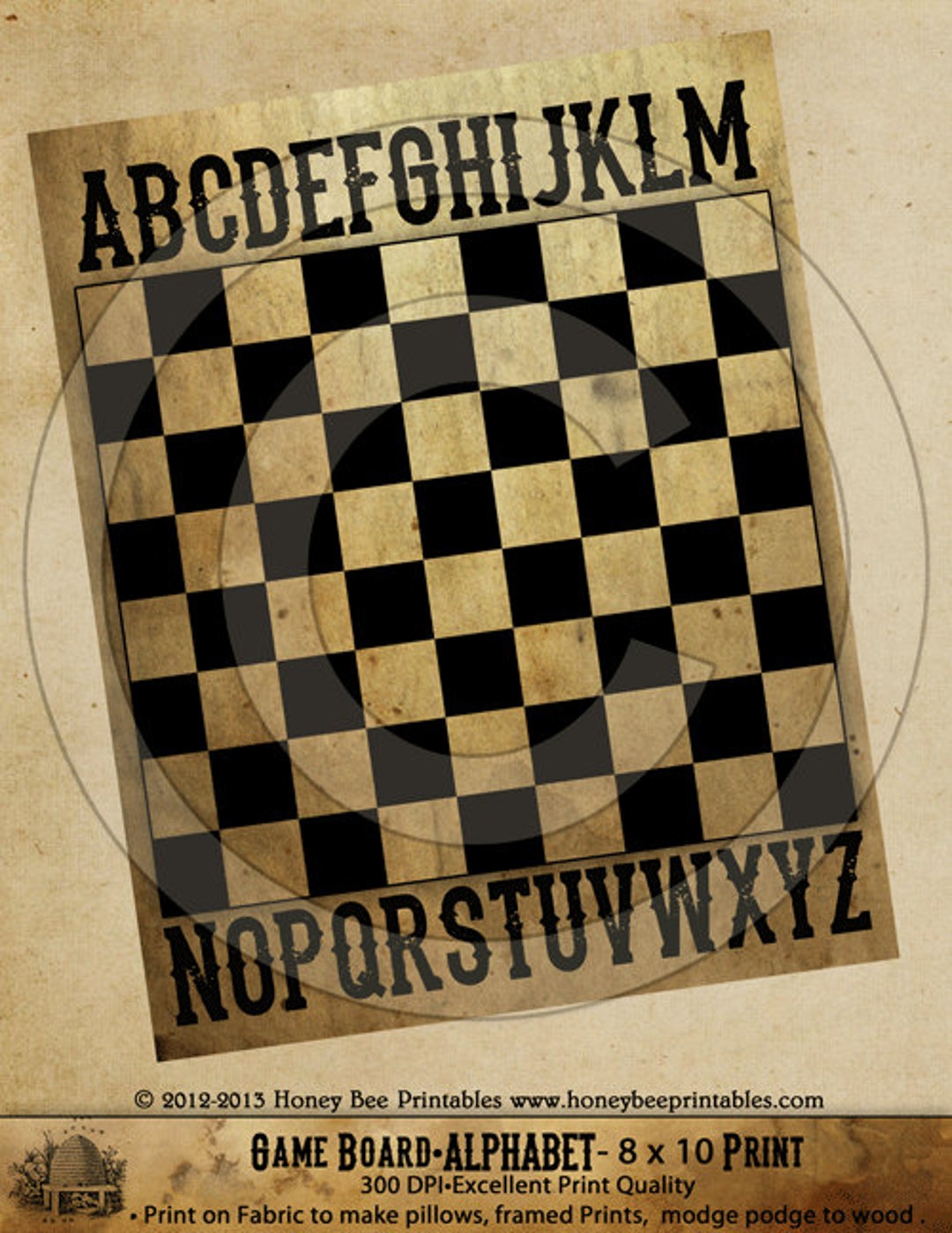 Game Board Primitive Grungy Alphabet-printable Digital Feedsack Logo ...