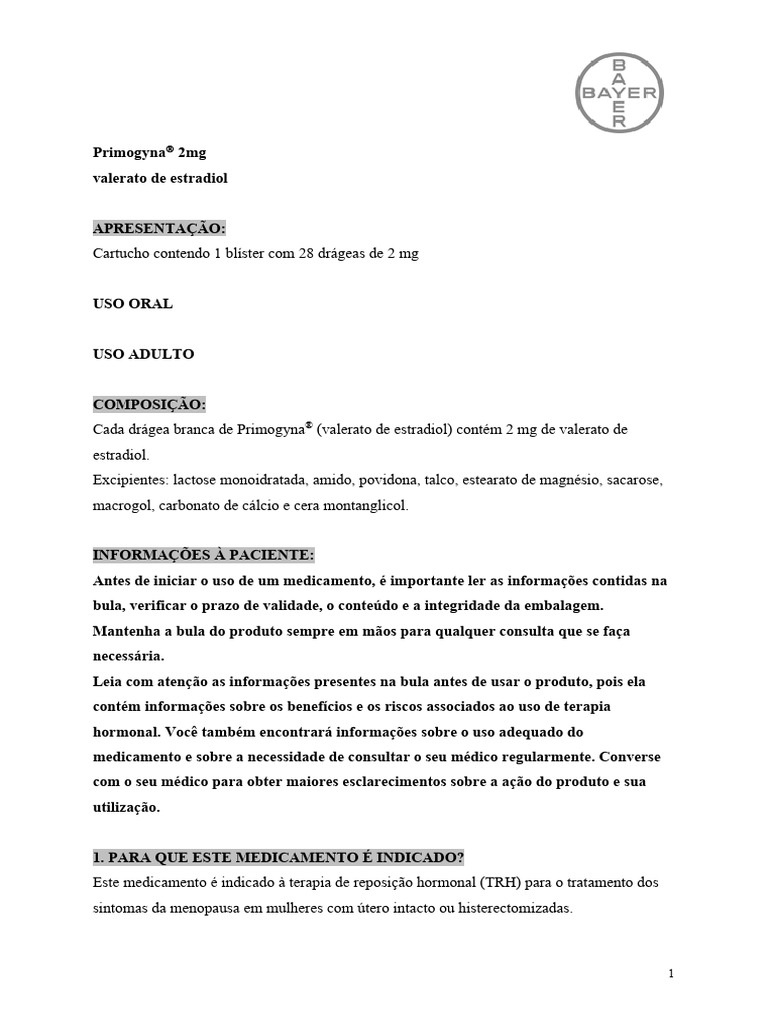 PRIMOGYNA® BAYER S.A. - bula para paciente, efeitos colaterais, dosagem ...