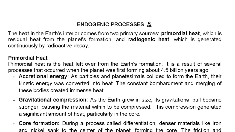 Endogenic Processes: Primordial and Radiogenic Heat Sources - Studocu