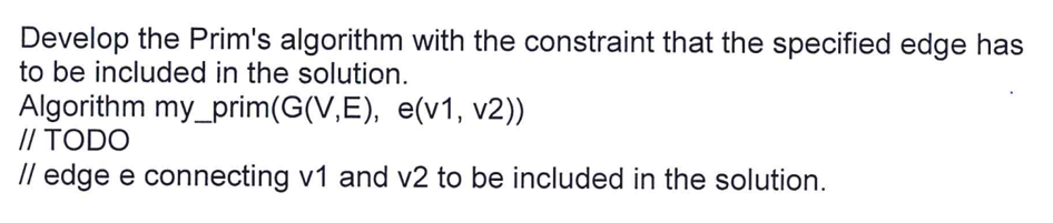Solved Develop the Prim's algorithm with the constraint that | Chegg.com