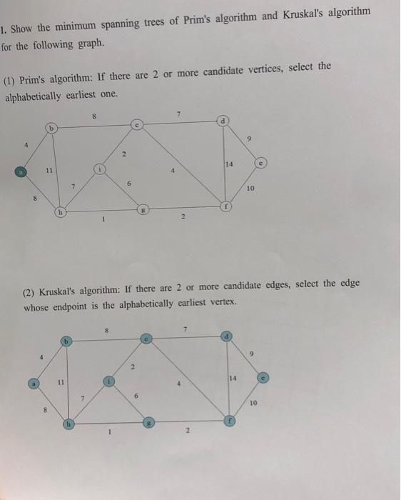 Solved 1.Show the minimum spanning trees of prims algorithm | Chegg.com