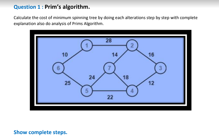 Solved Q1. (a) Prim’s algorithm is the modification of | Chegg.com