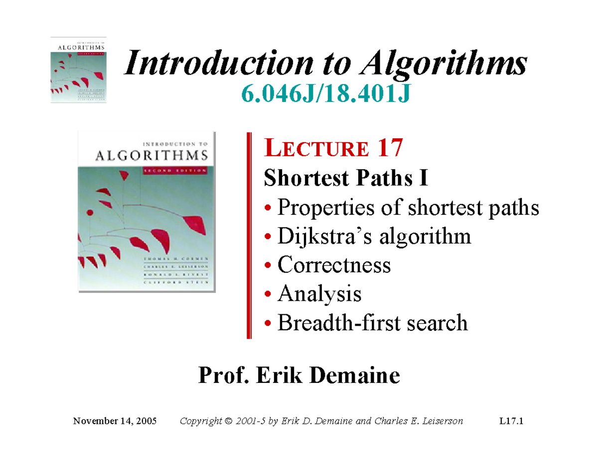 Lec17 - Comparing Prims and Dijkstra's Algorithms for Shortest Paths ...