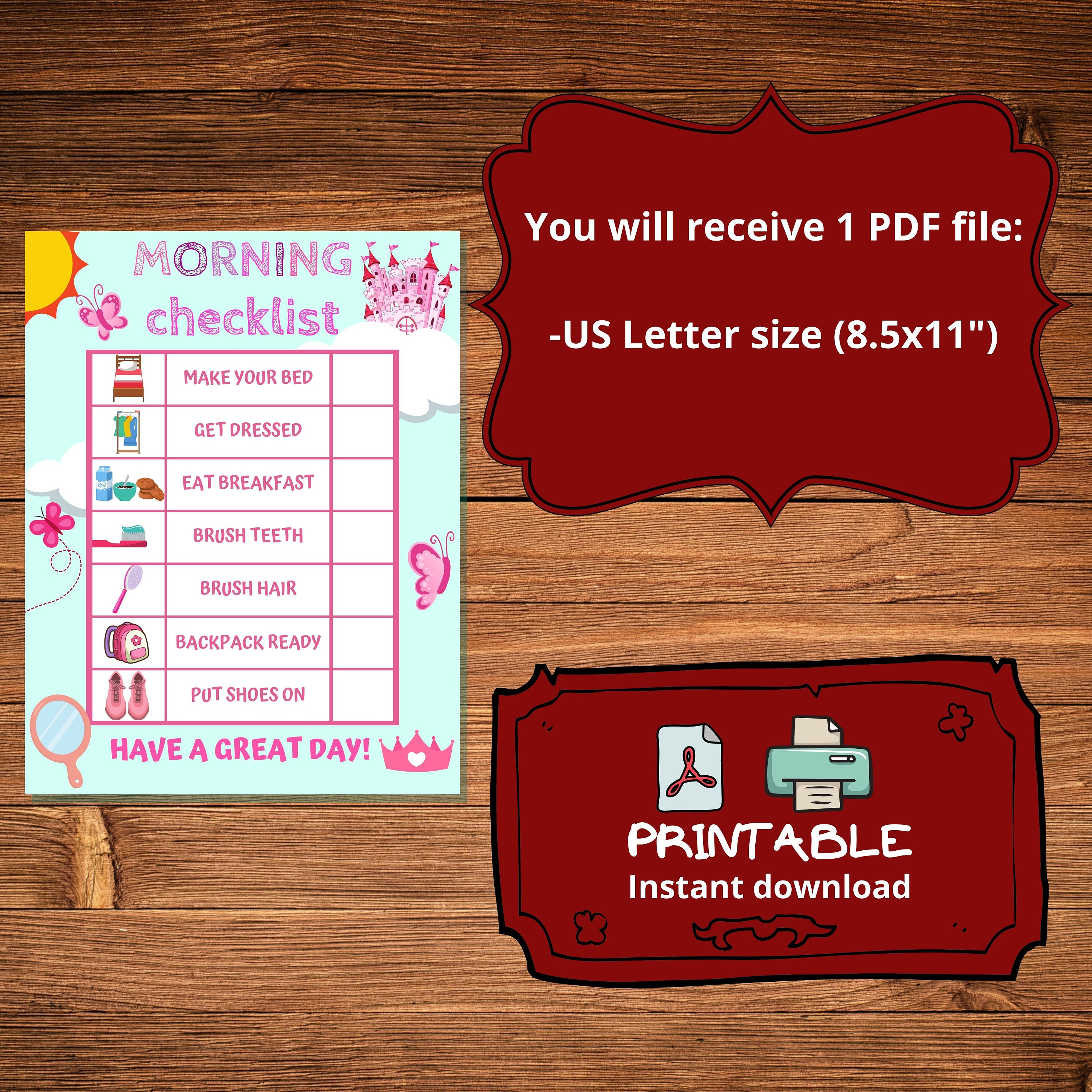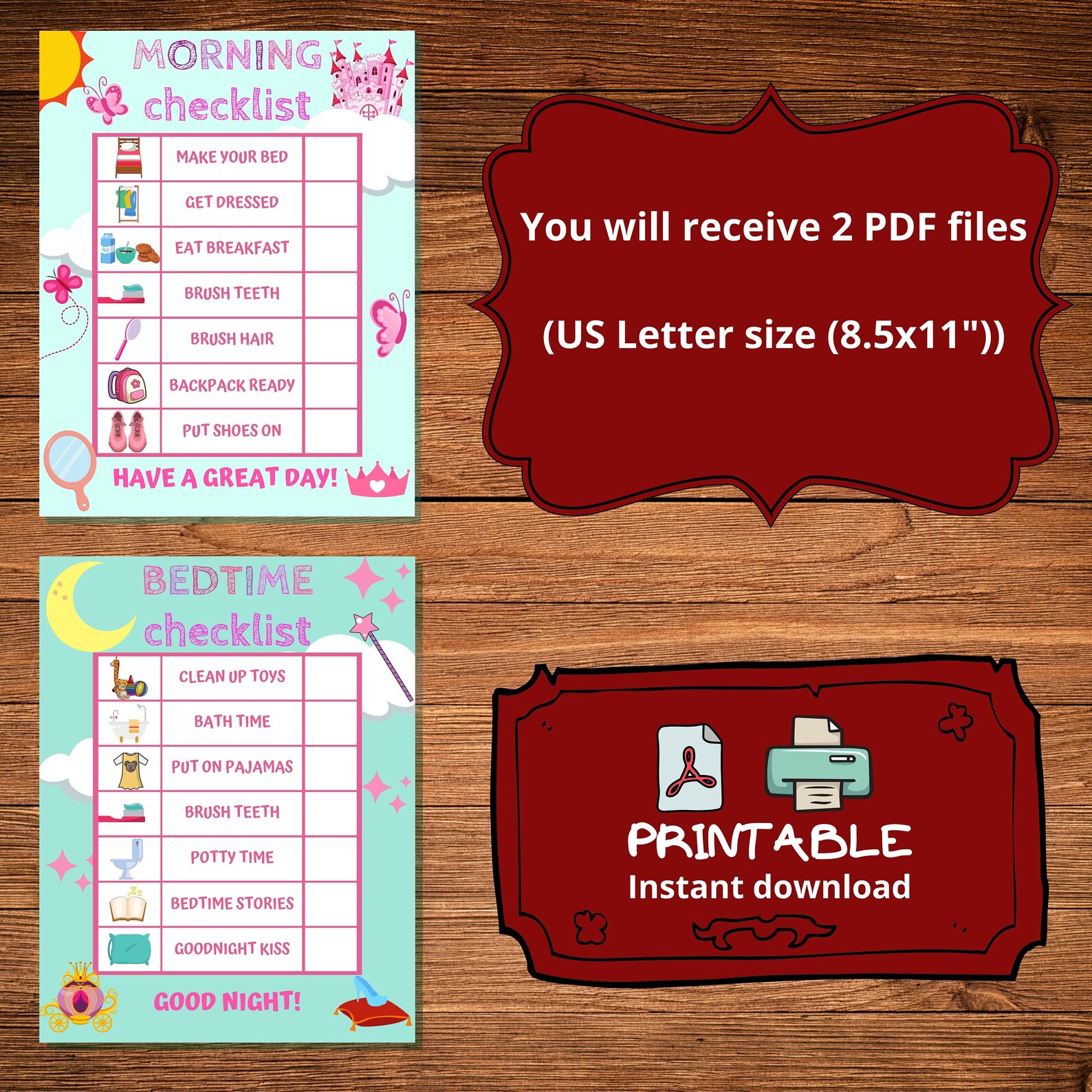 MORNING AND BEDTIME Checklist Princess Morning Routine - Etsy
