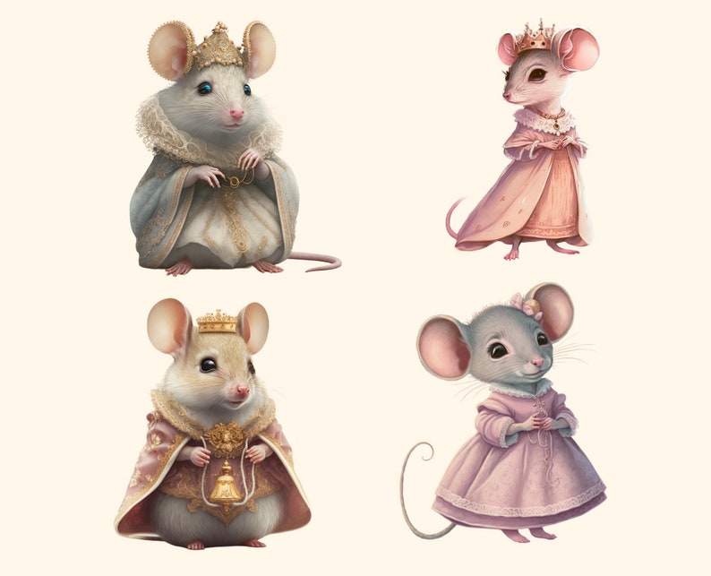 Watercolor Princess Mice Clipart 10 PNG Files Princess Mouse - Etsy