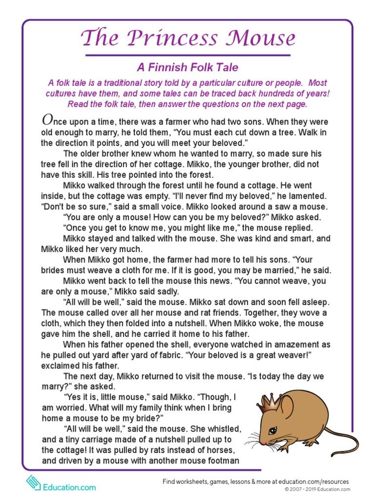 The Princess Mouse Folktale with Comprehensive Short Answer by Amy Roberts