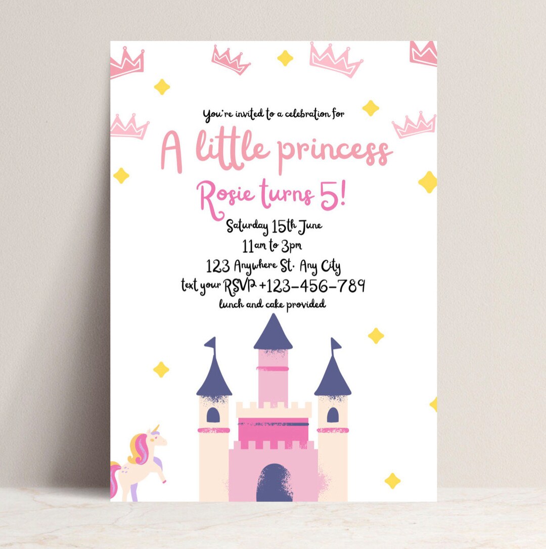 Princess Themed Party Invite - Customisable Digital Download Template ...